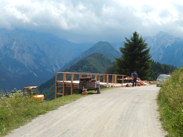 Sem mislil, da je odcep za Solčavo precej bližji, kot se je potem izkazalo, da je v resnici. Zdelo se nama je, da je na drugem koncu sveta... A tik preden sva prišla do odcepa, se gor pripeljejo spet ta mladi, ki sva jih srečevala že od včeraj. Zdaj smo že dobri znanci, en avto so pustili pri Rogovilcu, drugega pri Bukovniku. Torej so bili že zdavnaj dol, gor so že prišli po avto, midva pa še pri odcepu nisva?