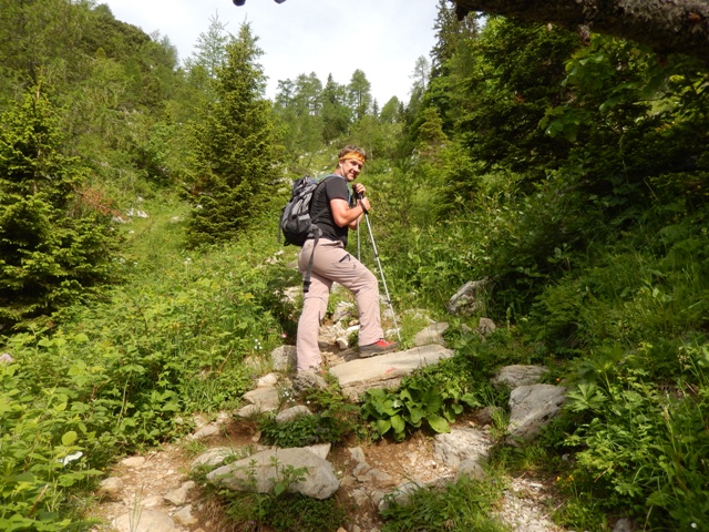 Ko pa sva vstala za naprej, se je pa kar naenkrat vse spremenilo. Kar naenkrat je prišla utrujenost za nama, z res težkim korakom sva začela tiste metre po pavzi. Ni se nama več dalo nikamor, vse se je začelo vleč. In kakor je malo prej pisalo, da je do Loke še 1:15h, se nama je vse skupaj še bolj vleklo, Koče na Loki pa od nikoder.