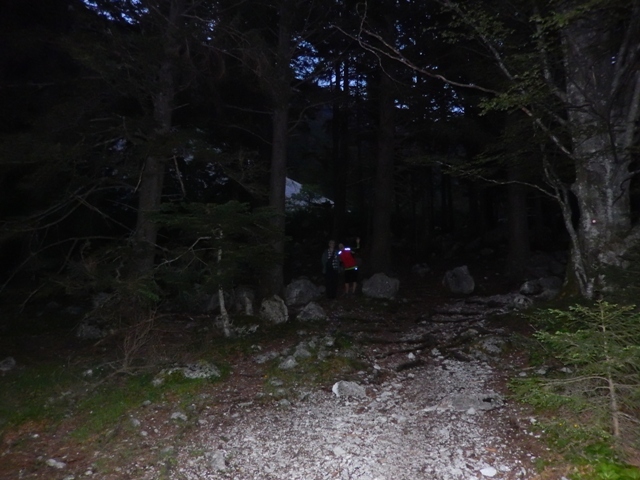 pa se nama čez 50-100m kar naenkrat obema nekaj utrne - "hej, saj tule sva pa midva bila!" Izkaže se, da smo tule res enkrat jedli večerjo, dolgih trinajst let nazaj je to moralo bit... Seveda vse drugače, takrat je bila tema... Je morala Helena nazaj slikat, drugače bi spet pozabila, da sva tukaj ponovno bila!