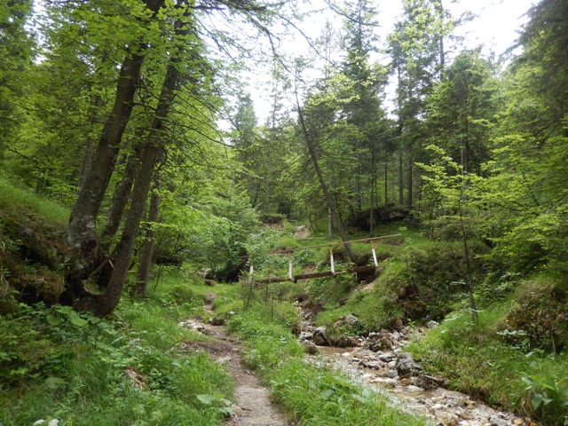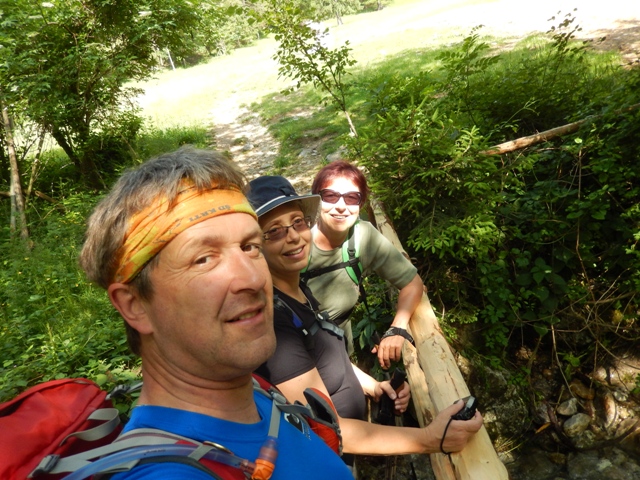 midva pa mimo hiške grs in mimo potoka polnega (jasno!) hladne izvirske vode, kjer sva se načofotala, le prideva do koče.