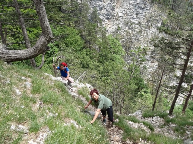 Vsaj začetek bivšega sestopa je na pogled precej zoprn. Morda zato, ker manjka kakšna zajla, ki je zdaj speljana tako, da ne hodiš tu dol.