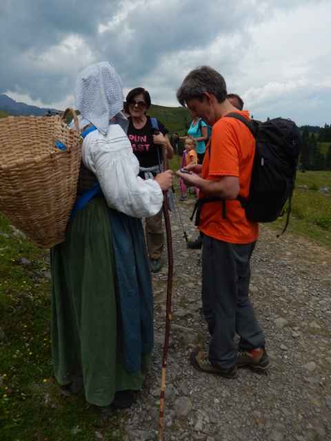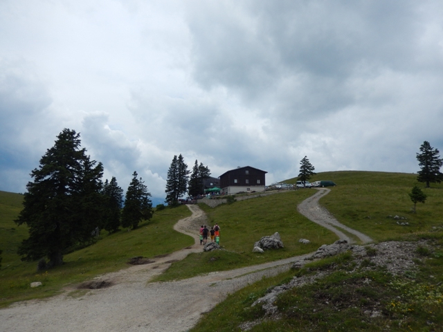 Stena je strma, a kratka, potem si pa hitro na Okrešlju. Ker smo že ravnokar bili v koči in ker je bilo povsod vse polno ljudi, smo jo mahnili kar naprej. Ura: 14:30h.