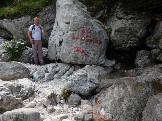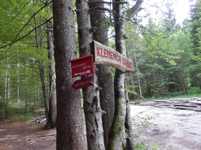 O, glej, tule se gre na Klemenčo jamo in naprej na Ojstrico, Korošico. Midva sva šla nazadnje po drugi poti.