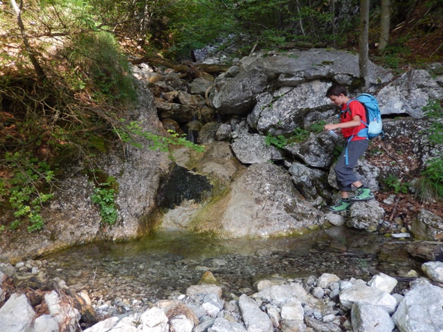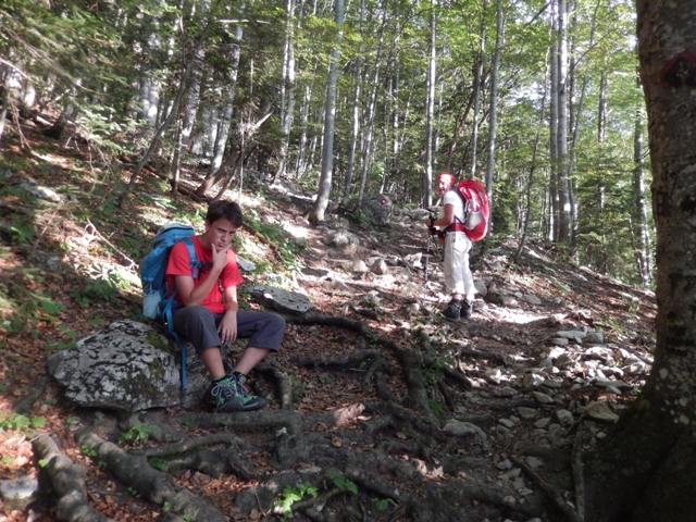 Izkazalo se je, da je pot strma ko hudir in povsem neobljudena, kdo ve, kdo je tule nazadnje hodil... A za razliko od vedno, tokrat nisem imel težav jaz, temveč Helena. Ni in ni ji šlo dol po tisti strmini, meni pa se ni zdelo prav nič hudega. Najbrž težak nahrbtnik naredi svoje in če je celotna pot v listju in žiru, kjer si kot na kotalkah, to najbrž terja davek.