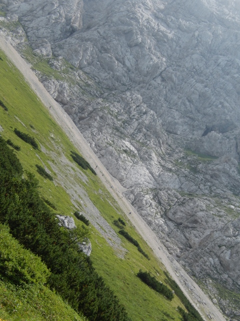 Pot je zanimiva, saj dela take grozno dolge serpentine. Tako, da greš večkrat kar malo dol, toliko so dolge. Pravzaprav nisem uspel razumet načina, kako je nadelana pot. Mnogo lažje bi bilo, če bi šla kar naravnost gor. Čeprav bi najbrž potem mnogi mnogo bolj sopihali, kot so že. No, pa ne mi, mi smo imel kondicijo.