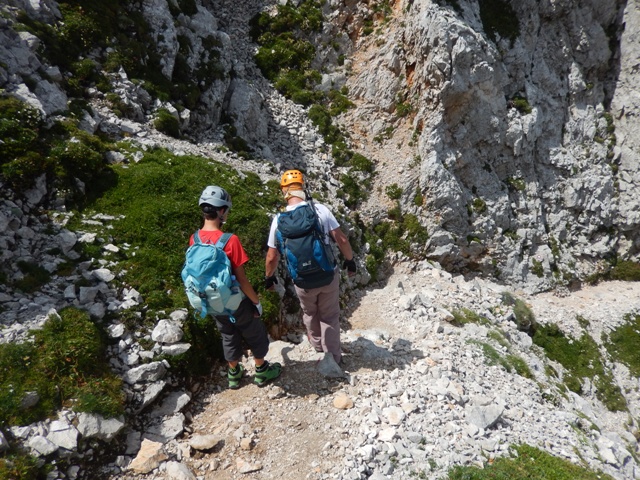 si nataknemo čelade in se odpravimo po poti navzdol, proti Okrešlju, proti Logarski!