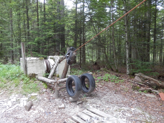Našla sva še spodnjo postajo žičnice in se čudila, zakaj nima motorja tu spodaj? Je motor zgoraj? Ni to malo nenavadno? Je motor nekdo gor znosil in zakaj? Ali pa ima motor sam voziček? Hm... kdo ve, kdaj bova razkrila to skrivnost!