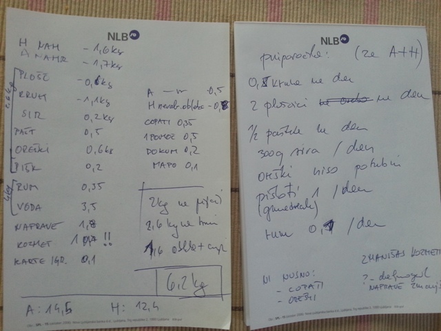 Ker sva bila kar malo jezna na težke nahrbtnike, sva vse, čisto vse, kar sva imela, zložila na mizo in nastal je velik kup.