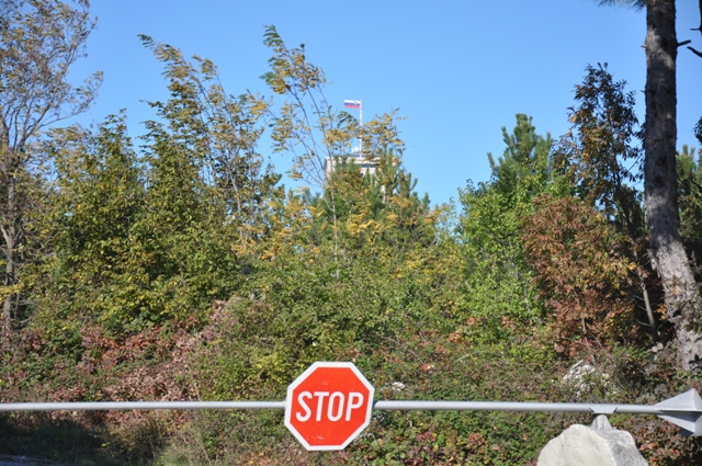 No, evo, ko smo že bili blizu in ker grem stavit, da drugi tudi niso vedeli, kaj to je! Na tabli piše precej dvoumno in še najbolj se nam je zdelo, da piše, da so italijani plačali za spomenik, da smo odcepili del ozemlja od njih. V podrobnosti se nismo spuščali, birokratske table so pač birokratske. Večinoma z njih zveš kaj povsem drugega...