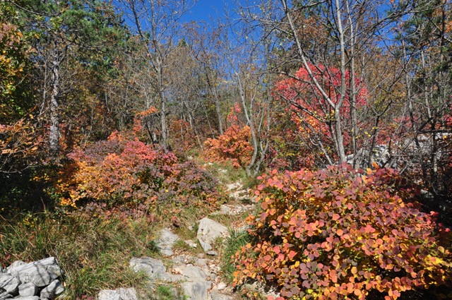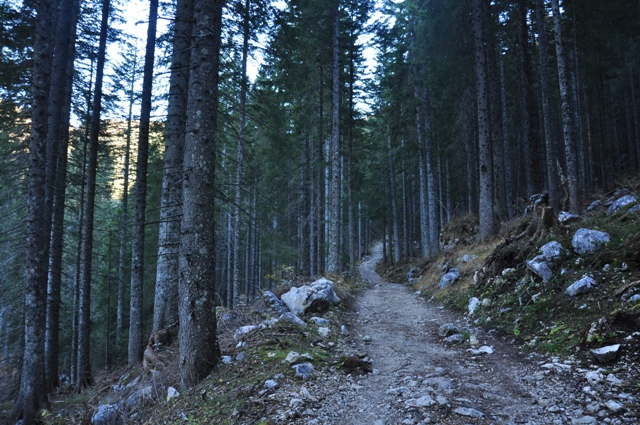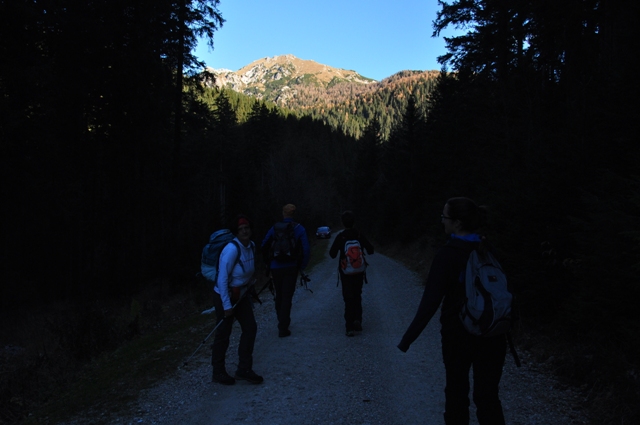 Prec takoj so se začeli kontrasti, ki nam v začetku niso dali slikati. Močno sonce v kontrastu s temnim gozdom. Viševnik in pokljuški gozdovi v novemberskem soncu. Začeli smo celo z dolgimi rokavi!