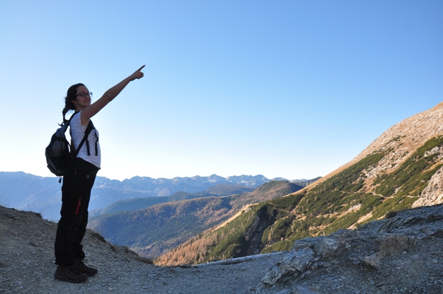 In že smo na Studorskem prevalu. Manca pa pokaže kam je treba it.