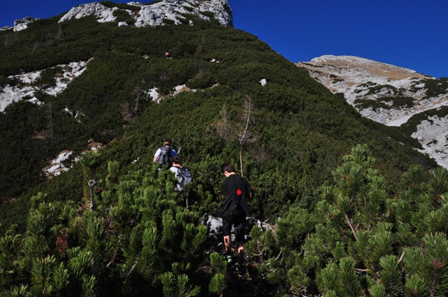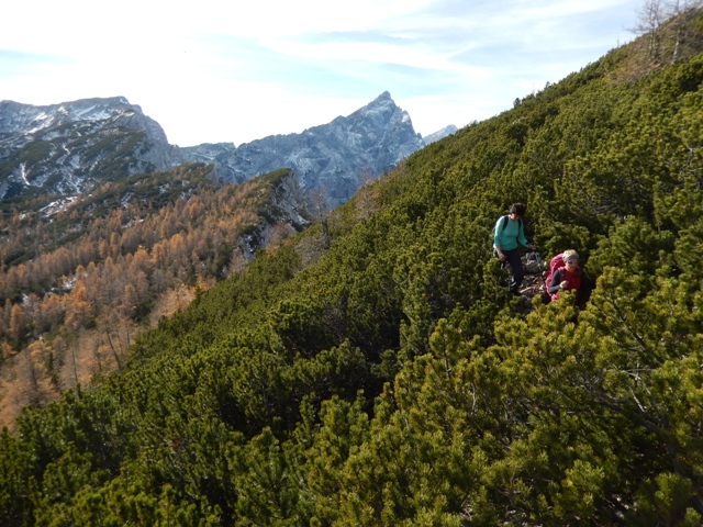 Začetek je strm, veliko ruševja, malce za poplezat, a nič nevarnega. Se pa VDV že kaže v ozadju, še malo pa bomo gor!