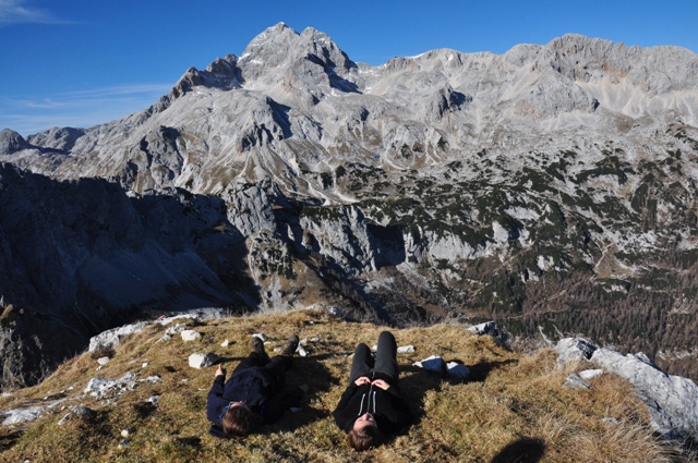 Tukaj se nad nas zvrnejo horde ljudi. Bedasto bi bilo razmišljati, da jih v takem dnevu ne bo, zato sem se že doma pripravil na ogromno obljudenost teh krajev. Kombinacija kraja, časa in vremena pač zvabi marsikoga v hribe. In, čeprav mi je ljubše biti v hribih sam, se mi zdi tako tudi prav, saj niso hribi samo zame. Če hočeš, že najdeš kaj samotnega, to nikoli ni bil problem. A danes ni bil tak dan.