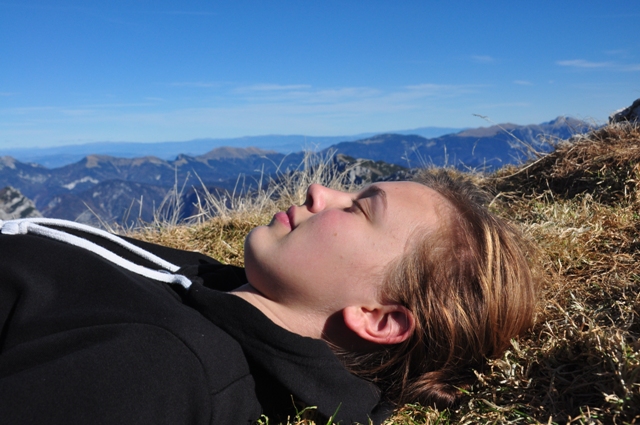 Petsto ljudi je na vrhu, a nam uspe najti svoj prostor. Za poležavat, za gledat, za poslušat, za bit.