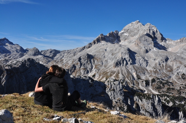 Da skrajšam to dolgo kačo: na koncu je padla odločitev za Veliki Draški vrh oziroma VDV, kot ga vsi imenujejo. Ravno prav visok, ravno prav daleč, ravno prav za hodit in ravno prav nemarkirano. Poleg ravno pravih razgledov in ravno prav ostalih lepot. In če že tolikokrat hodiva po dvorišču Grintovcev, zakaj ne bi šla enkrat na dvorišče Triglava? Z VDVja mora bit direkt na dlani, ni res?