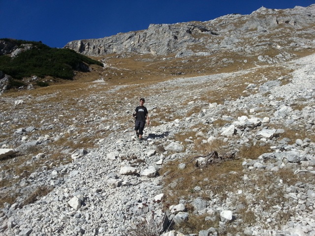Dol smo si izbrali drugo nemarkirano pot, pot, ki se spusti proti MDVju, proti markirani poti, ki gre s Studorskega prevala na MDV. Ne bomo po isti poti hodili še nazaj, ne?