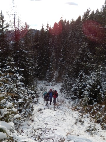 A dol je šlo počasi, a kar v redu, čeprav sem se bal, da bo težje. Vseeno pa smo na Gontah le pomahali Toscu v pozdrav, ni treba ravno prvič že cele noge uničit.