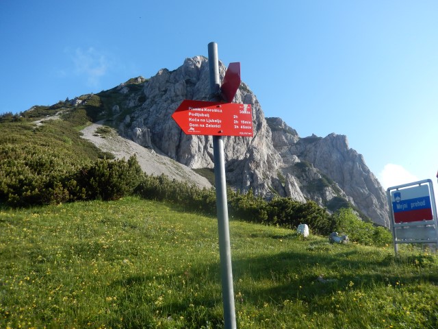 Pa še slabe pol urice in smo na Hajnževem sedlu, na eni strani Košutica, na drugi Veliki vrh. Precej izrazito sedlo, junija polno trave in cvetočih rožic.