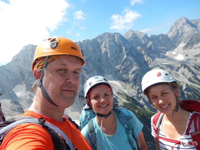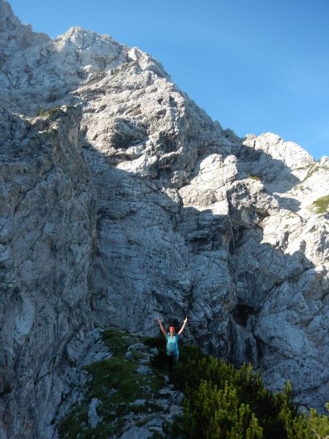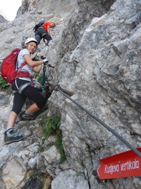 Že na vrhu Slovenske smo bili precej navdušeni, plezarija je luštna, dan pa je bil prekrasen! Pa še koča je blizu, juhuhu!
