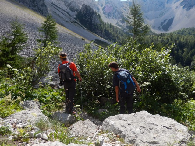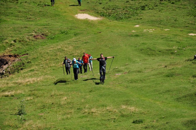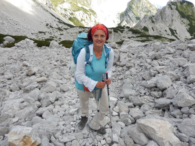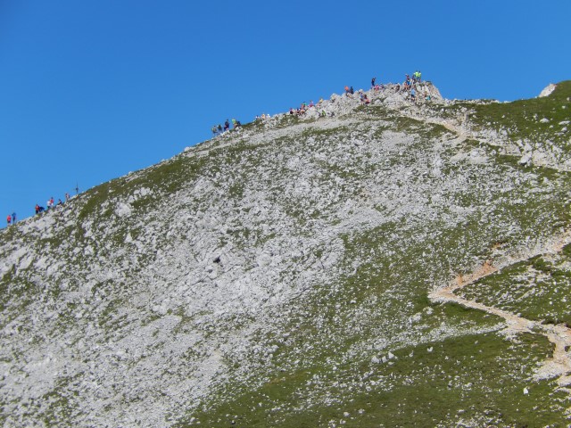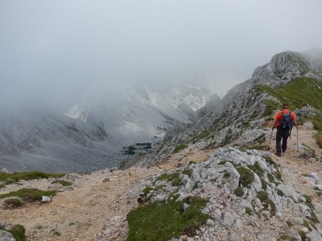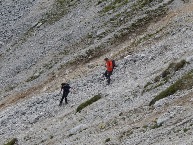 Prehitevali seveda nismo, nismo tako hitri, smo pa tiste ta hitre spuščali naprej. Pohodniki večinoma avstrijci, nekaj tudi slovencev, vsi pa zgledno opremljeni.