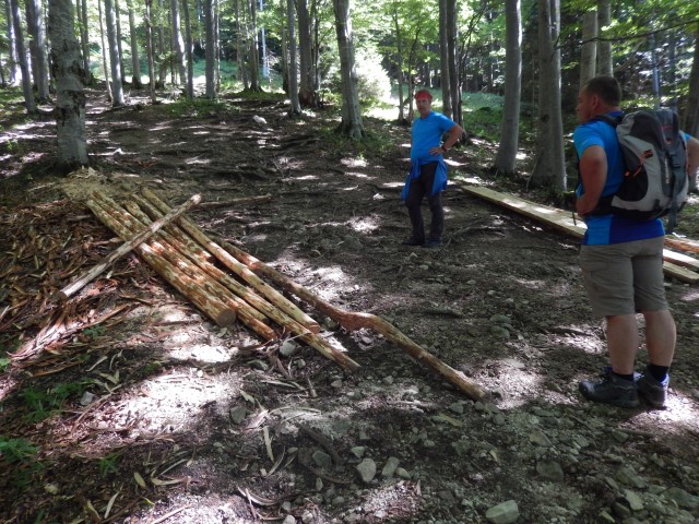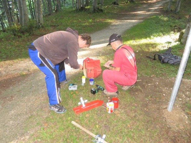 Tisti slabo postavljen drog smo le z žalostjo opazovali, tam se ni dalo narediti prav nič. Potrebni bodo drugi pristopi. Je pa to hudir delat sredi strmine, vse, česar nimaš s seboj, moraš hodit iskat nazaj. To pa vemo, da ne gre hitro...