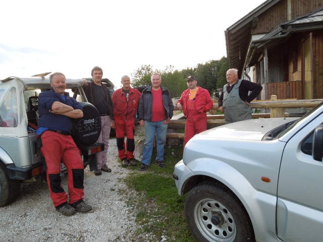 In smo že bili na Jelševem konfinu. Prtljaga je šla gor z avtom, mi pa, kakor je treba, peš!