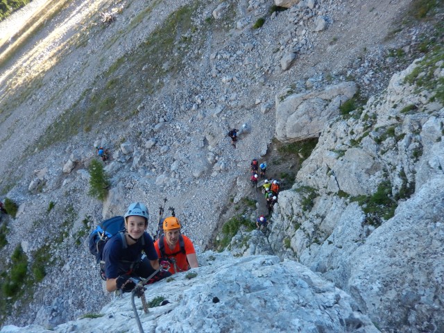 Sicer pa smo hodili v eni sami, bolj ali manj razvlečeni, koloni, lepo počasi in sigurno. Varovala res super narejena, še stopi so bili sem in tja betonirani, da ti še na kamenčke in krušljivost ni bilo treba pazit. Neverjetno.