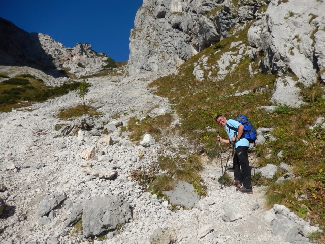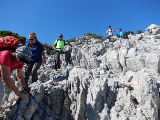Potem nas je čakal še spust, ki je bil po tistih škrapljah presneto nevaren. Naše utrujene noge pa so že malo trpele in sem in tja je koga že nevarno zaneslo.