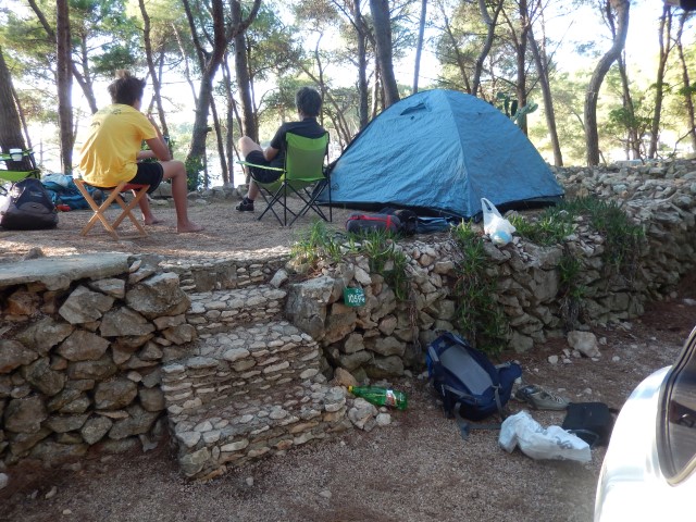 A kljub žeji jih več nismo smeli spit, trije smo se poslovili od ostalih treh in se zapeljali v kamp Čikat. V kamp, kamor me sredi sezone ne spraviš, konec septembra pa je bil prava milina. Sploh potem, ko smo zavili še v trgovino, kjer imajo tudi lepo hladnega. Žuja je res zakon, sploh, ko si žejen od škrapelj Osorščice. Liter za 16 kun.