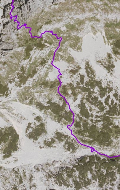 Pot ni več popackana, se pa da lepo sledit možicem, v kotanji pa pot tako ali tako postane prav lepa, široka in sledljiva. Pa tudi, če ne bi bilo nič, bi se dalo lepo liniji sledit. No, če pa bi bila megla... ejej, potem pa ni več enostavno.