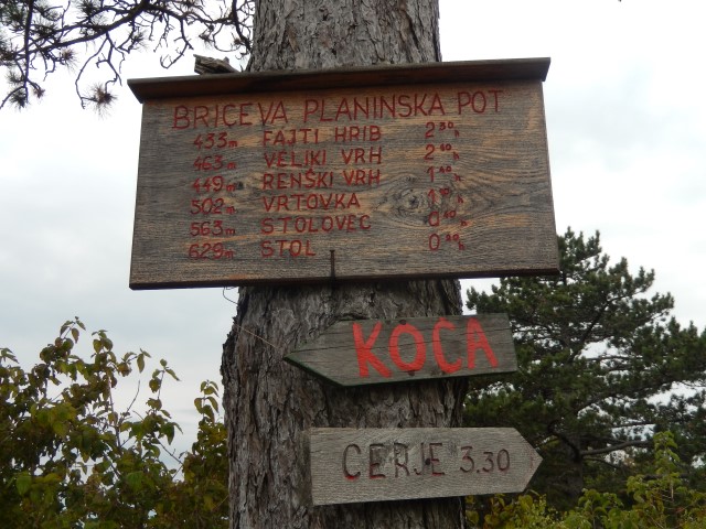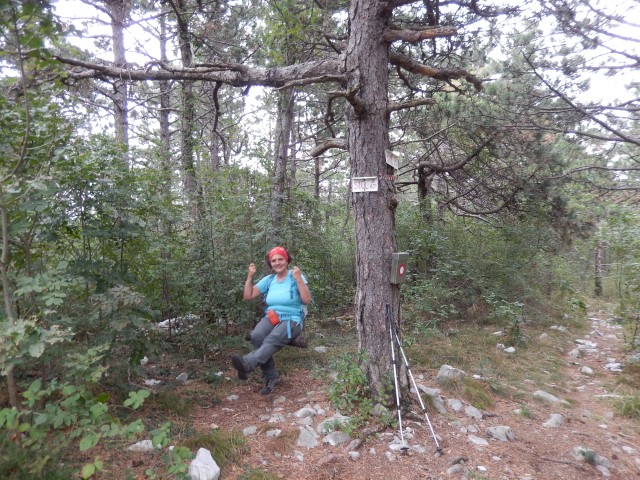 Pri spomeniku v Cerju sva se pozanimala kdaj je odprt, nato pa krenila proti Trstelju. Deset hribov grebena Črnih hribov je treba obhodit! Pa še nazaj! Oujea.
