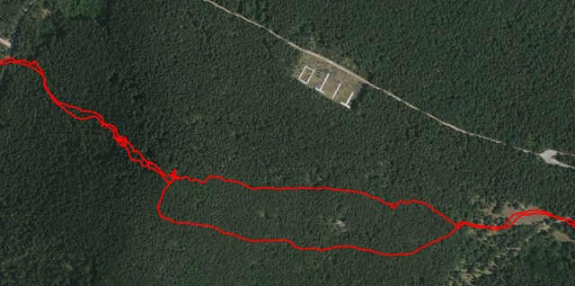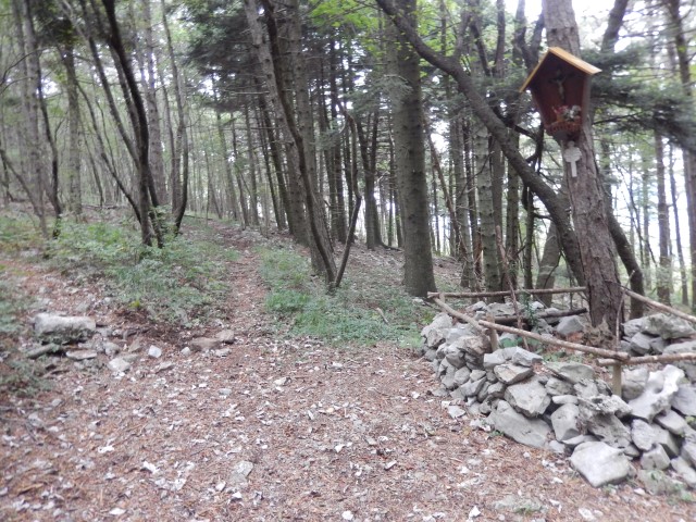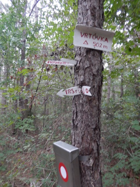 Nad titom sva šla, pa ga spet nisva videla. To bo treba še preverit. Dvojna črta tule pa je bližnjica z Velikega vrha. Tja grede je nisva uporabila, nazaj grede pa - ko sva že vedela kam pelje.