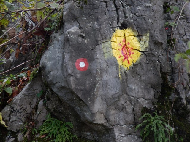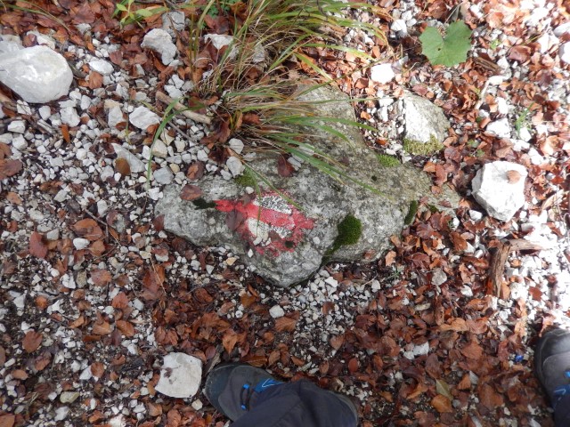 Je tole že mnogo lepše, čeprav najbrž manj uporabno, saj je markacija nevidna, nekje pri tleh in večinoma leta zaraščena. Je pa skala markantna!