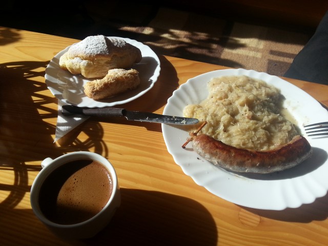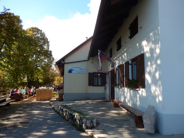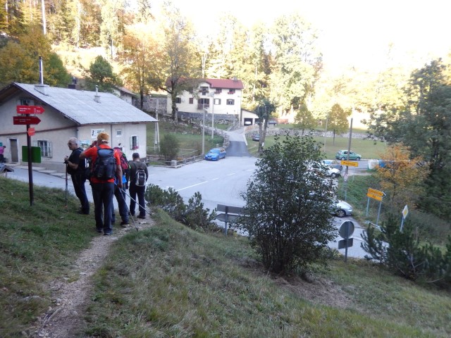 Spustila sva se še do koče, pogledat kaj imajo, se malo pomenit, kako je s skupino in podobno. Tule je vedno polno italijanov s kolesi, če je pa nedelja, potem jih je pa sploh!
