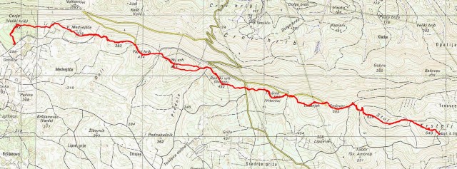 Na Trstelju te usmerijo takole nazaj proti Cerju.