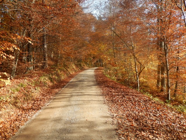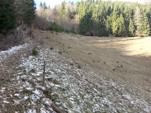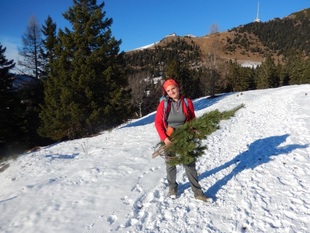 Na koncu sva jo mahnila navzdol kar počez (pri tem pa sva seveda našla tudi pot, ki sva jo na poti navzgor izgubila!), da ne bi spet motila žage, a ker sta v sozvočju naokoli peli kar naenkrat dve žagi, sva jo morala urezat nekje vmes. In nama je uspelo.