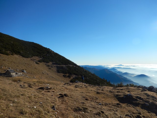 Neprespana in zmačkana sva naslednji dan vseeno hotela nekam zavit. Nekam gor, saj smo direkt pod grebenom, kjer sva že hodila, prav blizu mora to bit! In če sva takrat spustila Veliki Travnik (malo zaradi kljubovalnosti, malo zaradi lenobe sem zapisal takrat), zakaj ga ne bi tokrat le obiskala?!