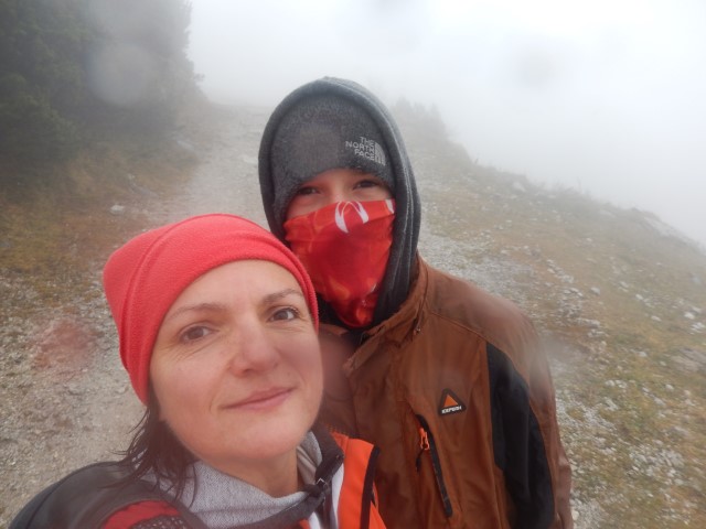 Prišla sva pa le! Sredi megle, sredi teme, direkt do koče! Juhuhuu!