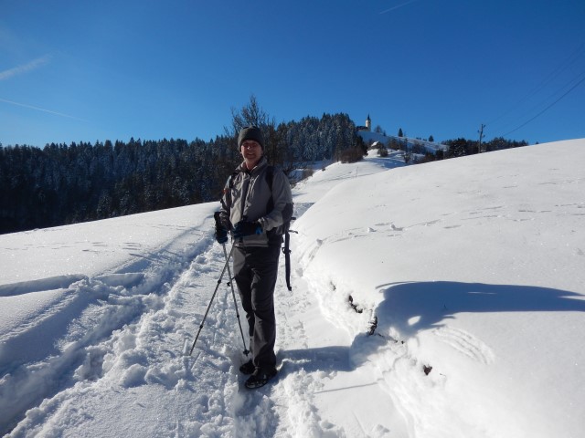 Do Sv. Ožbolta je snežna odeja kar rasla. A se nisva veliko sekirala.
