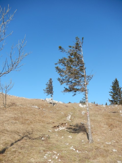 in strmo direktno na Kovk, kjer naju je odpihnilo. No, ne čisto. Sva se kar dobro držala, k sreči ni bilo prav mrzlo.