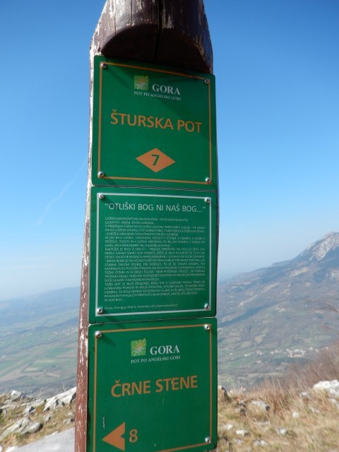 ali pa kakšen znak, ki jih je tu naokrog polno. Vsepovsod same poti. Sva že za Črnimi stenami.