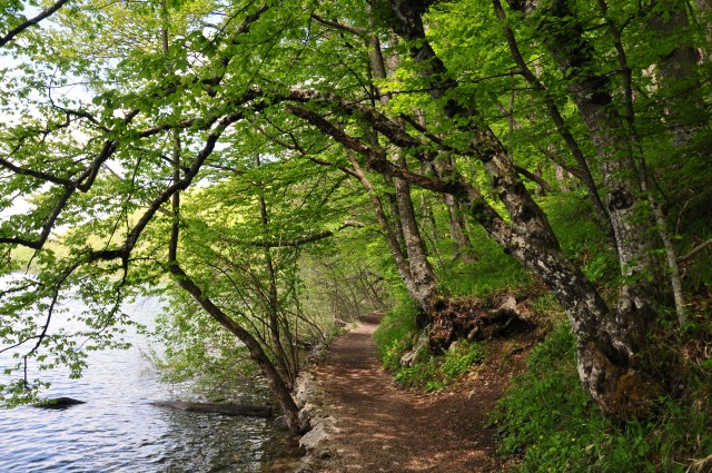Tam na koncu poti, preden obrne nazaj in kjer si na najvišji točki poti, ki vodi okoli jezer, ni bilo prav veliko ljudi. Smo imeli kar lep mir. Več ali manj...
