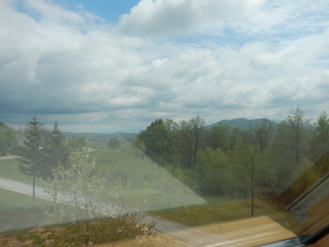 Z okna pa smo imeli prav lep razgled na Medveđak - točno tja, kamor smo se namenili še isti dan! Da smo lahko pogledali ali je gor še kaj snega...