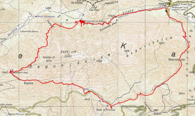 Krog je torej popolnoma isti, kot je bil 2016. Čas pa je malce spremenil, zadnjič sem rabil sam 4:20h, tokrat je bilo to malce... no, pustimo to. Je bila ogledna tura, raziskovanje gostoljubja koč in podobno, ne pa tek okoli hriba.
