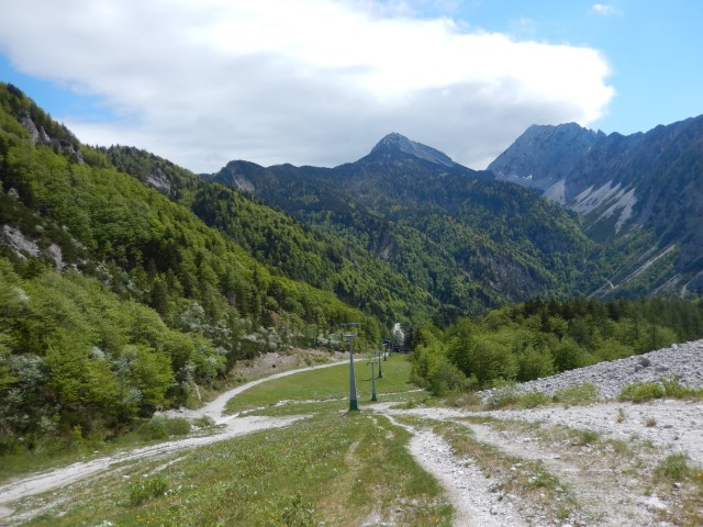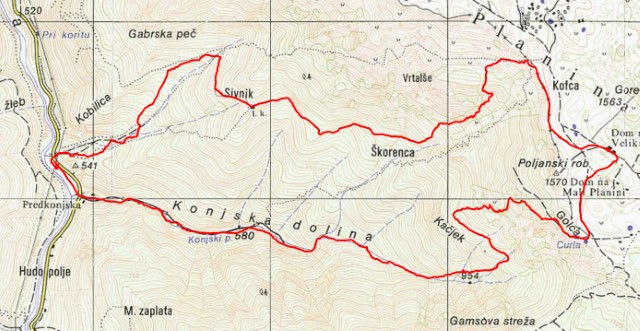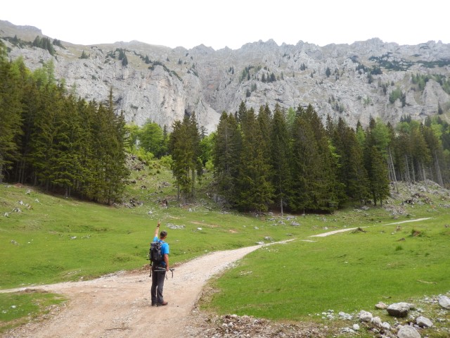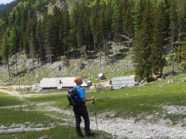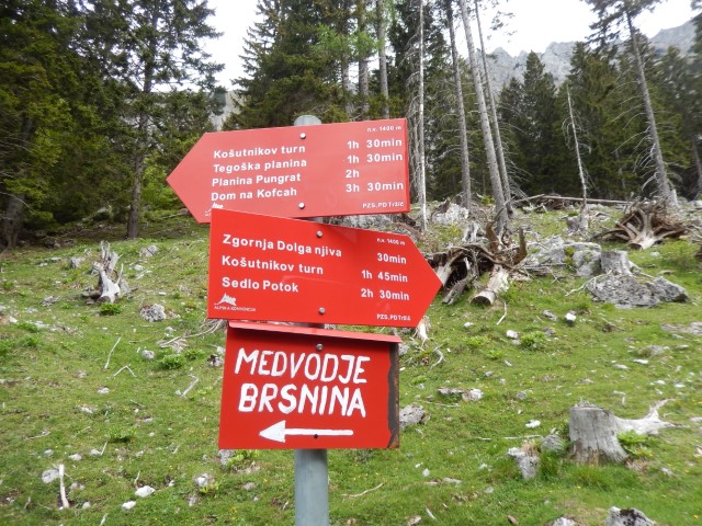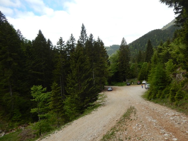 No, tam smo parkirali. In se zapodili v Konjsko dolino. Tak je bil namreč plan za navzgor - skozi Konjsko in čez Kačjek na Golco in mimo Curle na Malo planino.