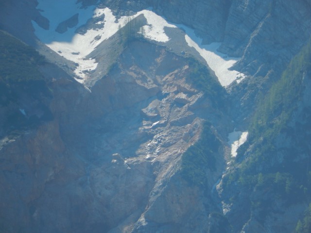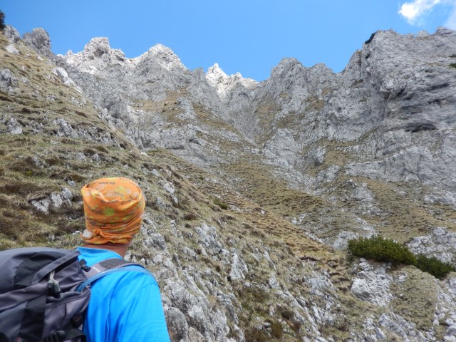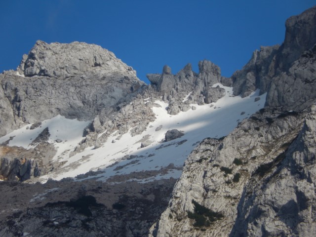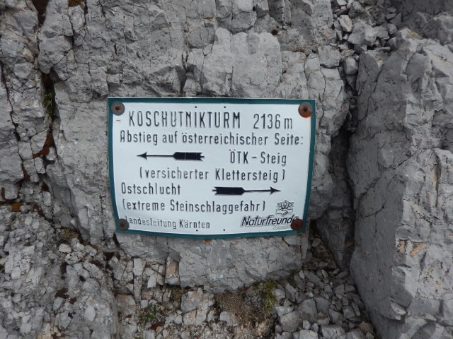 Lahko pa jo seveda mahneš tudi na tisto stran dol. S sedelca gre OTK klettersteig, zame bi bilo ravno prav, kaj? Še dol si nisem upal pogledat, le od daleč sem videl zadnjo zajlo, ki pride na vrh. Tista ostschlucht je pa sploh še bolj zanimiva. O, ja. Če pa hočeš še več, imaš pa itak še Cjajnik. Same zanimive zadeve skratka.