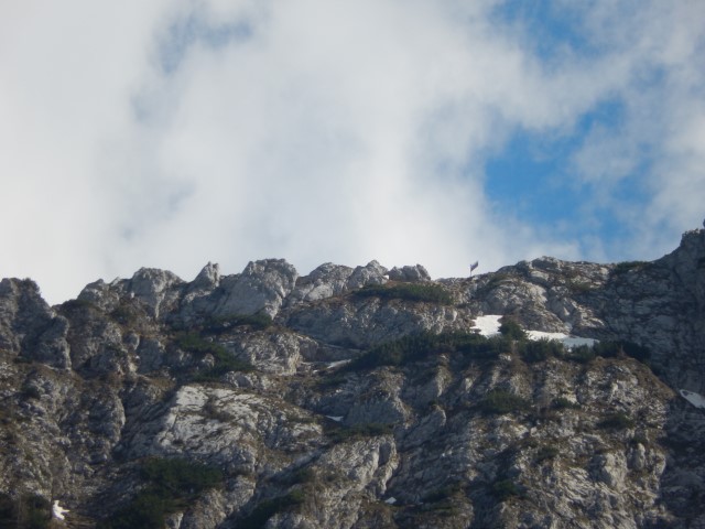 Se je treba pozanimat ali je zastavo s Kamniškega sedla čez zimo odpihnilo. Ok, ni je odpihnilo, super.