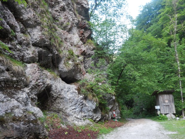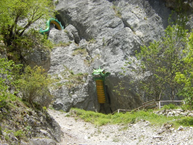 Malo pred Logarsko sva zmaja pustila pri miru, nama sicer ni zgledal preveč strašen, je pa pisalo, da je pot zaprta. In sva se tega držala. Kam bi pa prišli, da greš na izlet z avtom, potem ti pa kamen na glavo pade. Heh, mogoče bi se pa podala tja gor po stotniji stopnic, če bi le imela čelade.