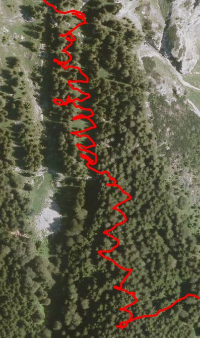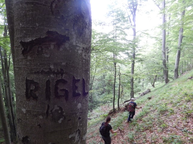 Se je pa sem in tja pokazalo, da tu res včasih, parkrat na leto, nekdo pa le hodi - ta zgornja povezovalna pot na Rigelj. Tale mora biti kar dolga, prečit mora kar precej strmin. Morda pa kdaj probava? A?