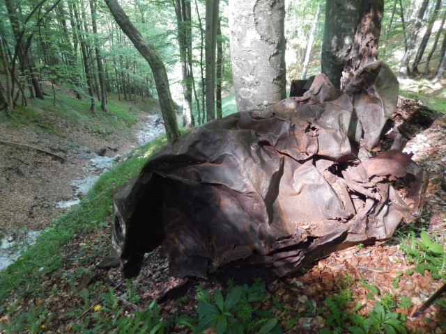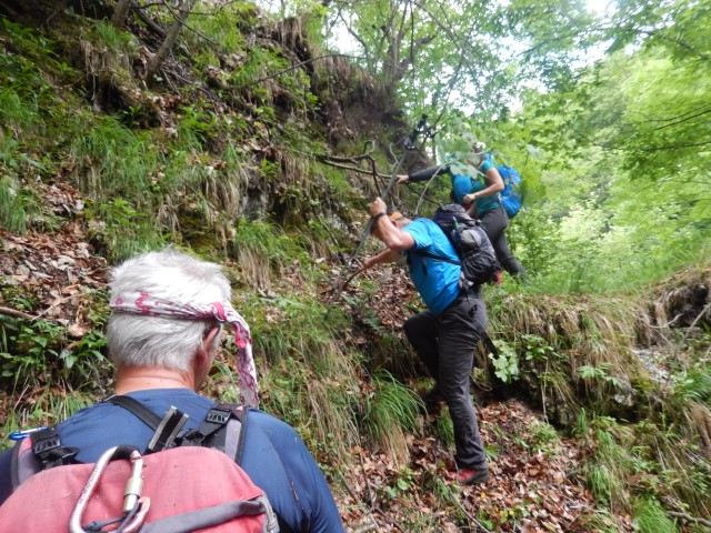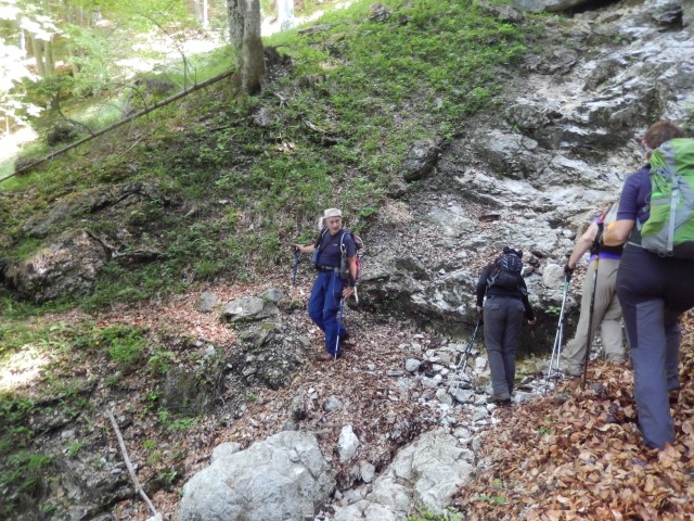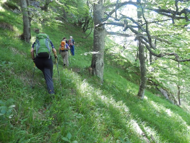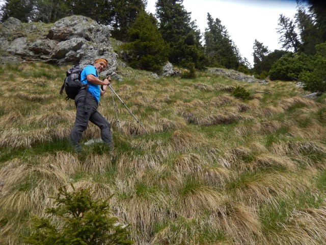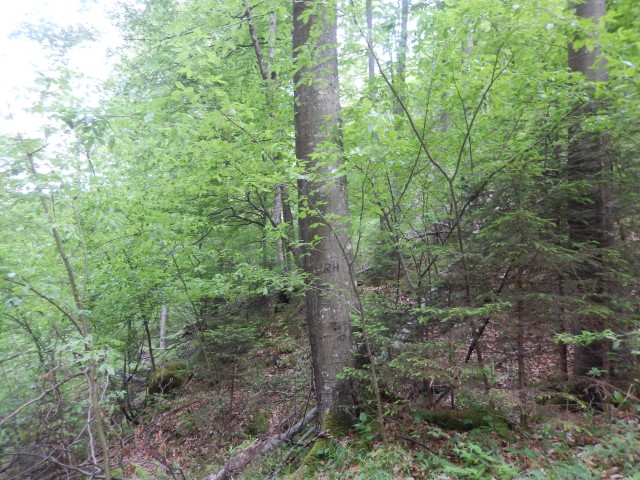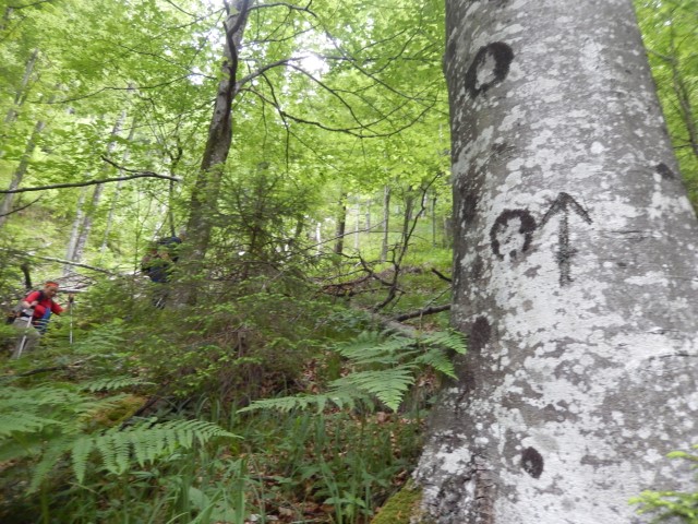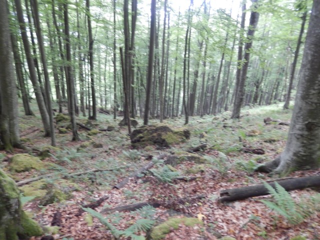 Gozd je bil več ali manj odprt, ni hudega, a strmina je kar bila, sem in tja pa se najdejo tudi kake skalne zapore, ki smo se jim seveda spretno ognili. Kdo ve, če bi jaz tole, zdaj v naslednjem letu, sploh še našel?!